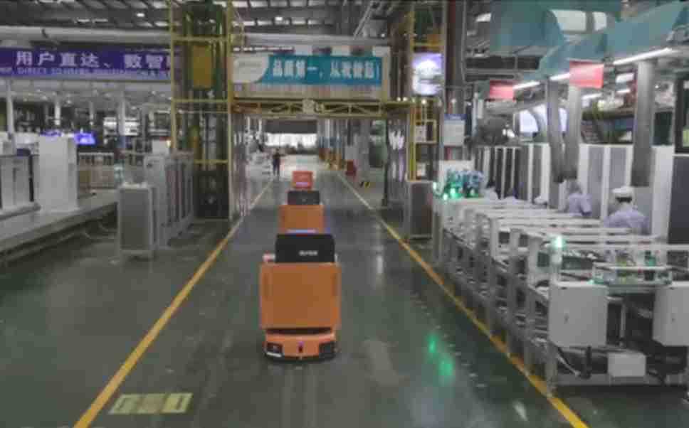 为车载冰箱物流配送打造的智能解决方案,,,,包含产中物流通过潜伏举升AMR搬运至线边,,产后成品物流智能仓储,,流程包含产中物流智能齐套入库,,,,线边安灯叫料AMR智能配送至线边,,成品入库、、出库,,,,通过无人堆高车机器人,,,,智能仓储管理替代人工作业管理,,,,实现更高存储、、更高效率、、、、更具柔性化的解决方案。。。